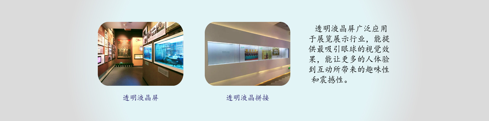 上海彩淵電子科技有限公司是透明屏成像解決方案供應(yīng)商,公司提供優(yōu)質(zhì)的透明顯示屏,oled透明屏,透明液晶屏,透明microled,透明滑軌屏,透明拼接屏,oled曲面屏等產(chǎn)品及顯示驅(qū)動(dòng)方案進(jìn)行終端設(shè)備的顯示及觸摸控制.至今,公司產(chǎn)品已廣泛應(yīng)用于展覽展示,智能交通,金融,多媒體,商業(yè)顯示,安防,裝修等多個(gè)行業(yè).